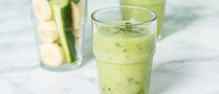 Receta Cookit de batido refrescante de pepino y menta Este batido de pepino y plátano es especialmente refrescante gracias al sabor afrutado de la lima y a la menta fresca: un sabor único. Leer más →